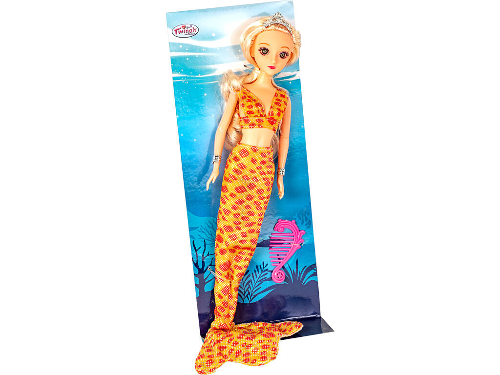 Boneca Sereia 30 cm. Amarelo e Vermelho