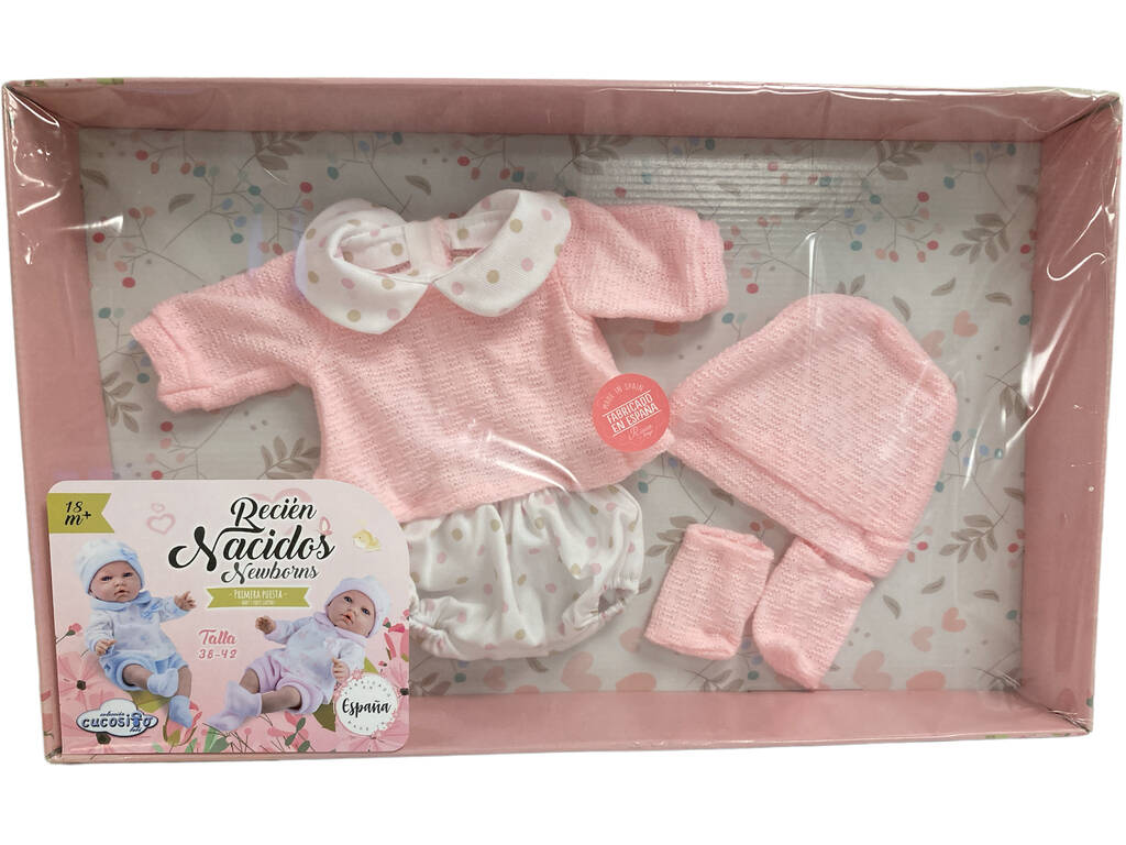 Conjunto Bebé de Lã com bolinhas cor-de-rosa 38-42 cm
