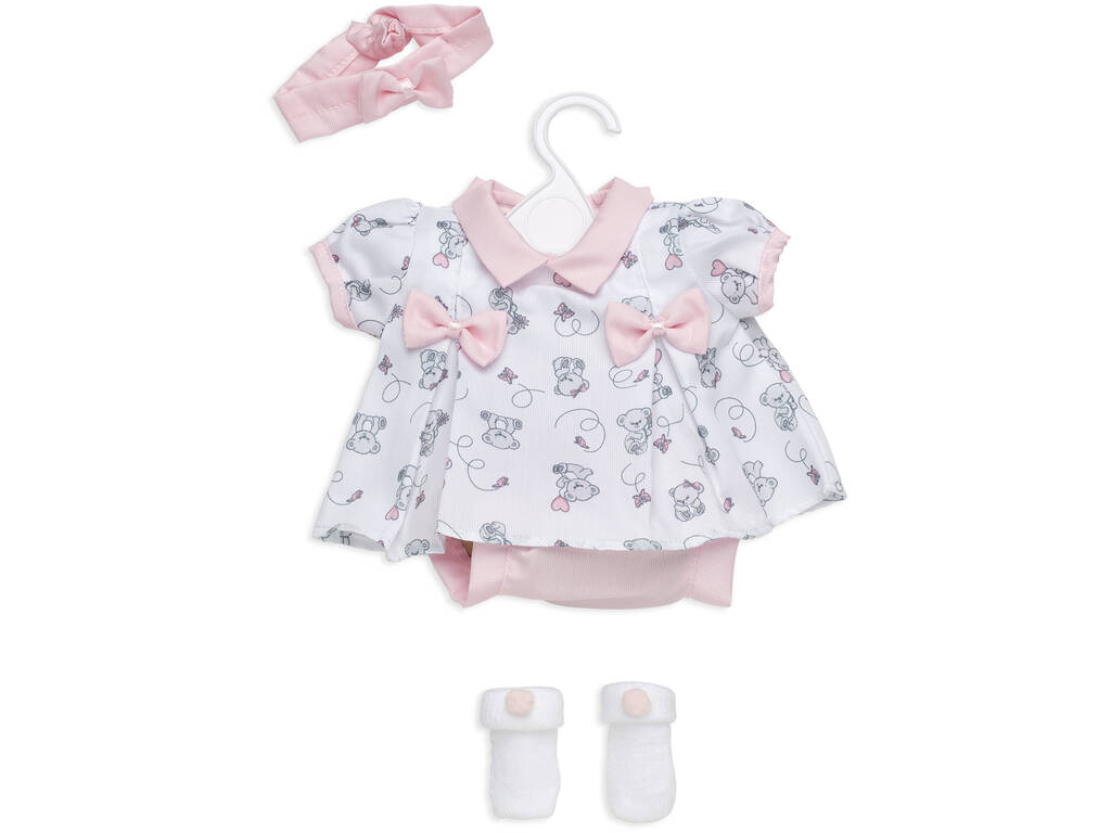 Vestido Boneca Recém-Nascida 42 cm. Branco Com Diadema e Pantufas de Berbesa T5120